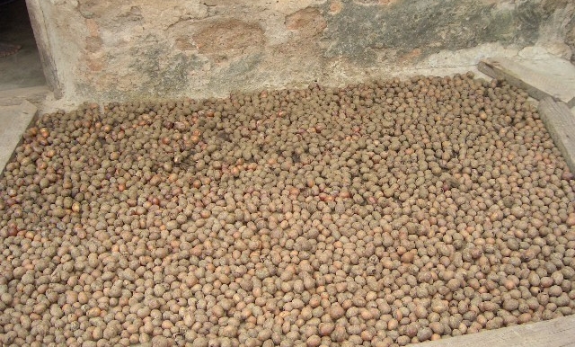 Raw sheanuts are left to dry in the sun